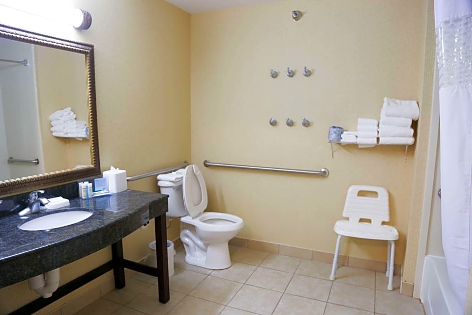 32-inch HDTV, sofa bed, free WiFi, large desk, coffeemaker Unwind in this welcoming room with one king clean and fresh Hampton bed® and a handy sofa bed. Relax watching the 32-inch HDTV or stay on top of business at the desk. Keep up-to-date with free WiFi. This room also has a coffeemaker. The bathroom includes a shower with a curved rod that allows for more space and light.